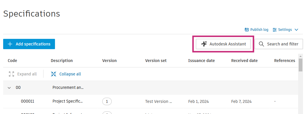Autodesk Assistant est un outil basé sur l’IA qui permet d’interroger directement les documents de spécifications d’un projet (cahiers des charges, normes, exigences matériaux, etc.).
